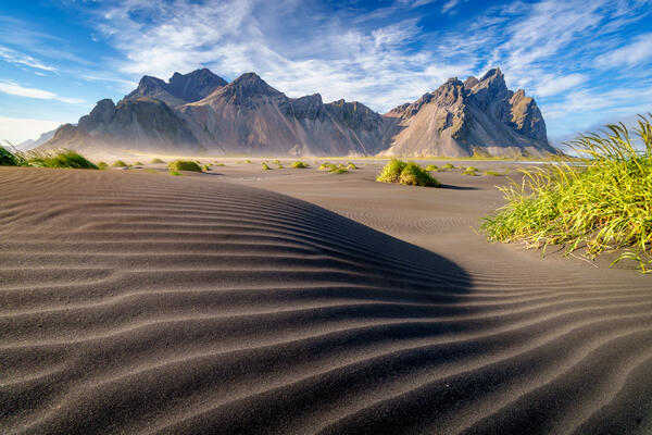 Po Jökulsárlón s ledovci Vatnajökull je Stokksnes s horou Vestrahorn pojedeme na ikonické místo Islandu s černou mělkou pláží s trsy travin, které skýtá úchvatný výhled na horský hřbet.