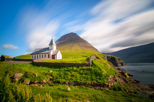 Prozkoumáme ostrov Streymoy, kde navštívíme malebnou vesnici Saksun s tradičními domy a zatravněnými střechami. Poté zamíříme do vesnice Tjørnuvik, odkud se otevírá výhled na dramatické skalní útvary Risin og Kellingin.