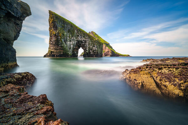 Vyrazíme na procházku na Trælanípu, úchvatnou skalní lokalitu, kde jezero Leitisvat leží vysoko nad oceánem. Budeme pokračovat focením mohutného vodopádu Bøsdalafossur, který padá přímo do oceánu.