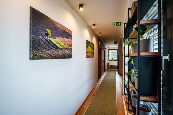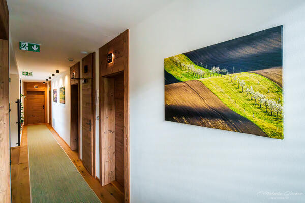 Živé barvy fotografií rozzářily hotelové chodby a přirozeně navázaly na design interiéru. Obrazy se tak staly nejen dekorací, ale i pozvánkou k objevování krás jižní Moravy.